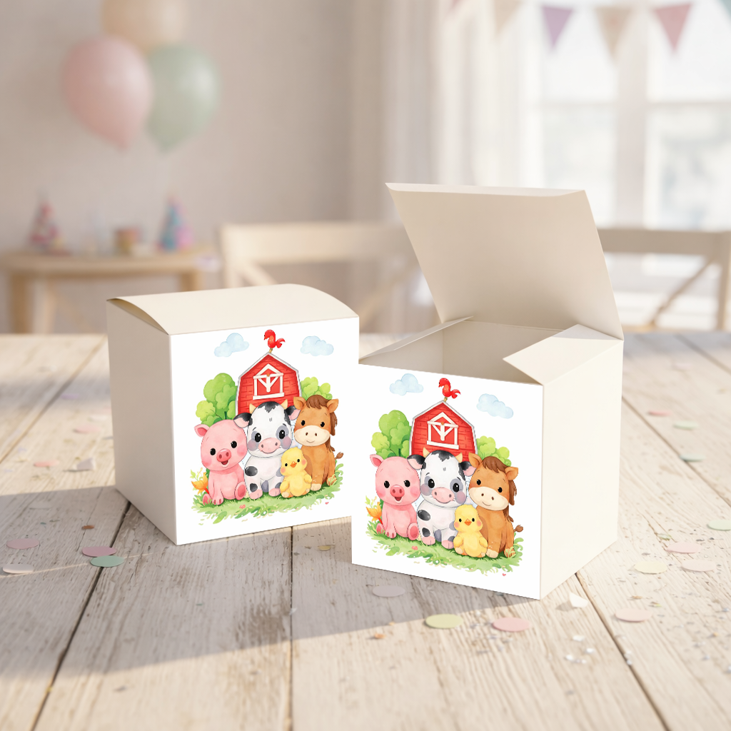 "Hermoso diseño de animales de la granja. Las cajitas quedan súper tiernas y perfectas para cumpleaños infantiles. Muy fácil de armar."
