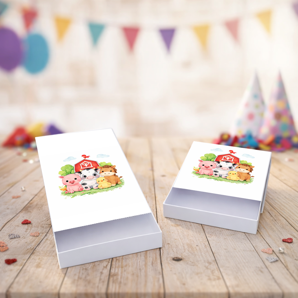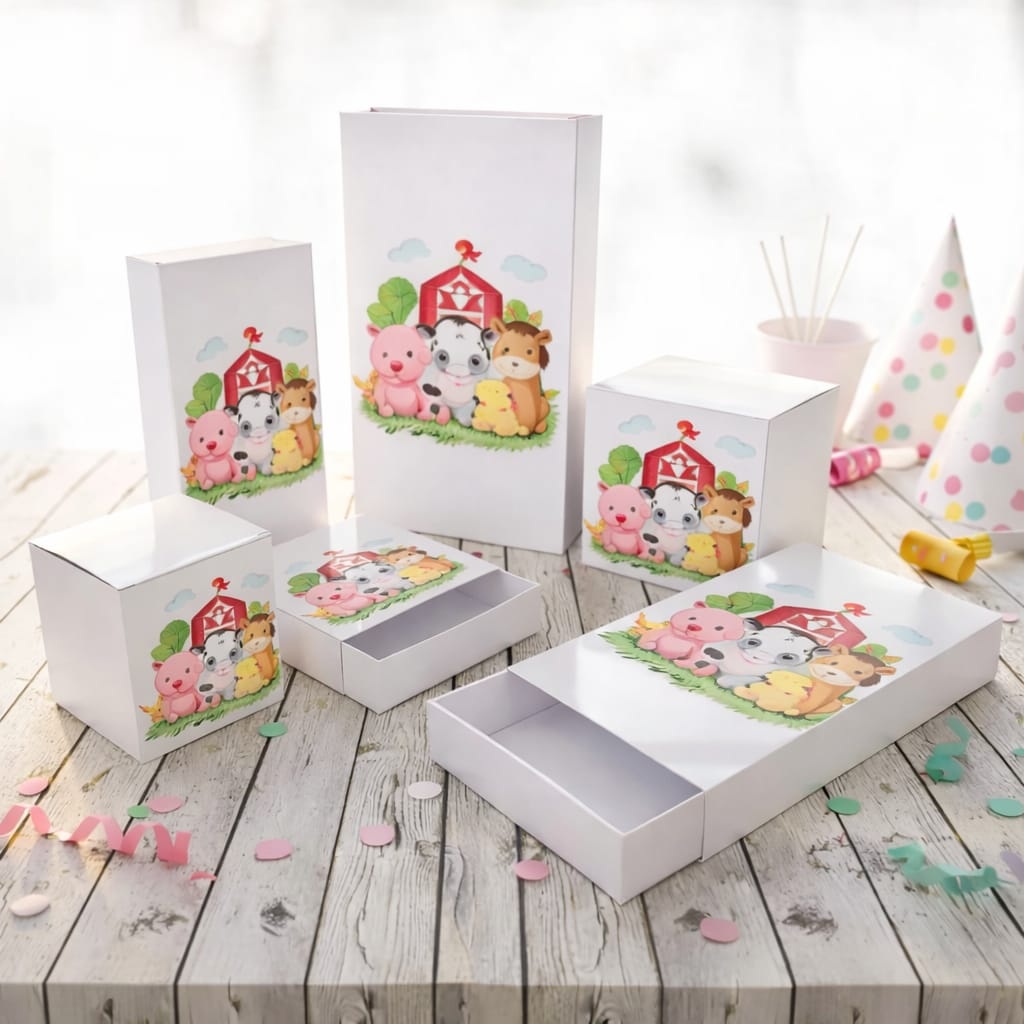 "Perfecto para cumpleaños temáticos. Los animalitos de la granja quedan divinos en las cajitas."
